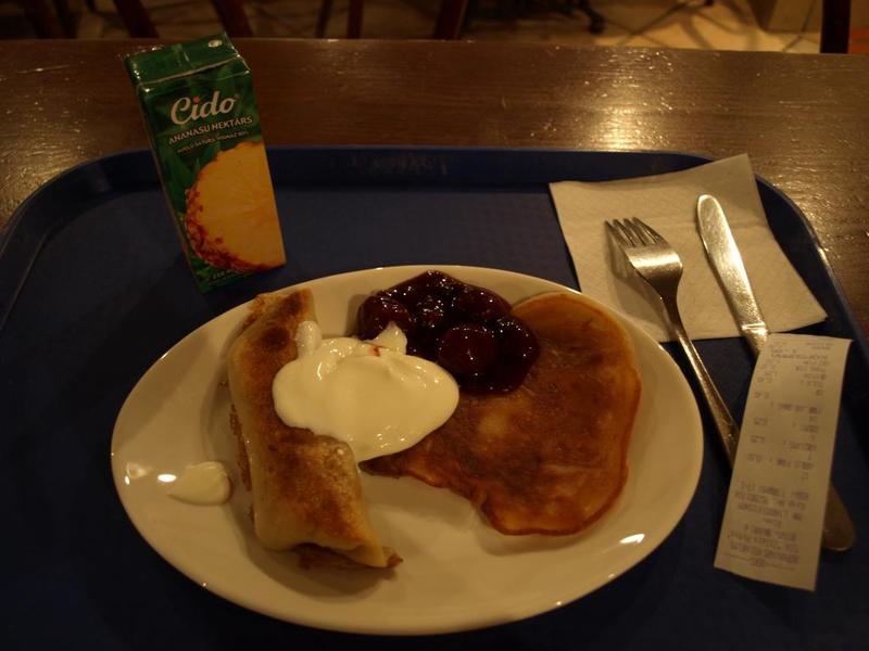 パンの種類やトッピングは自分で指をさして選べます。私はバナナのケーキにスメタナ(サワークリーム)とジャム。