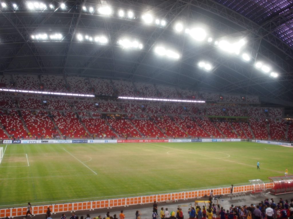 というわけでやってきたシンガポール・ナショナルスタジアム。今年できたばかりのスタジアムで5万人以上収容できるらしい。