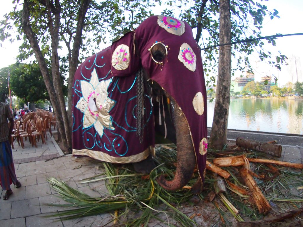 トゥクトゥクに乗って、郊外のシーママラカヤ寺院まで来てみた。ちょうどお祭り?をやっていて、湖の周りにゾウさんもちらほらと。