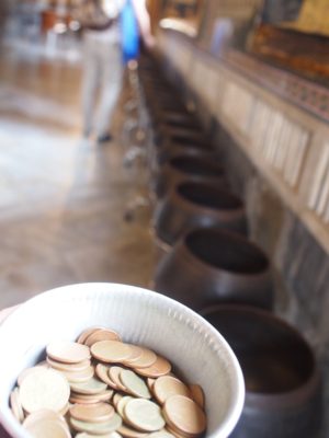 コインを買って、お椀にちゃりーんとコインを入れながら歩いていきます。お椀は煩悩の数108あるそうだけど、数えたらなんか足りなかった。。ダメすぎる。