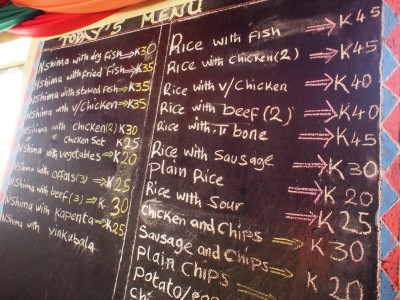 大きなスーパーがあったので入ってみたら物が豊富にある!タンザニアのアルーシャのスーパーには物が全然なかったからね。近くにトラディショナルレストランと書いてあるお店があったので入ってみた。