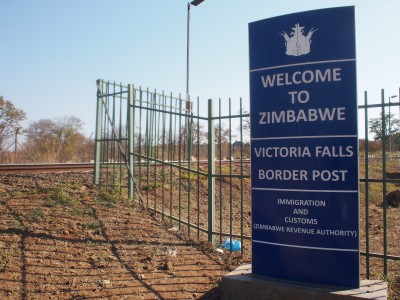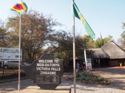 バンジーに挑戦する人を眺めながら橋を渡りきると、ここからジンバブエの標識があった。