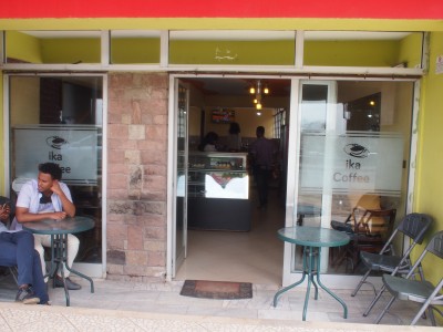 コーヒーを飲みながら今日行きたいところを確認。ちなみにエチオピアではSIMを買っていない。そしてこういうカフェでもWi-Fiは使えない。スマホで調べられないので、地図はガイドブックとGPS頼み。