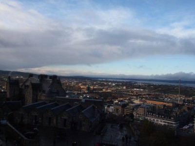 エジンバラ城からの眺め。坂を結構登るのと、買い物で歩き疲れてしまって、入ってすぐ休憩モード。