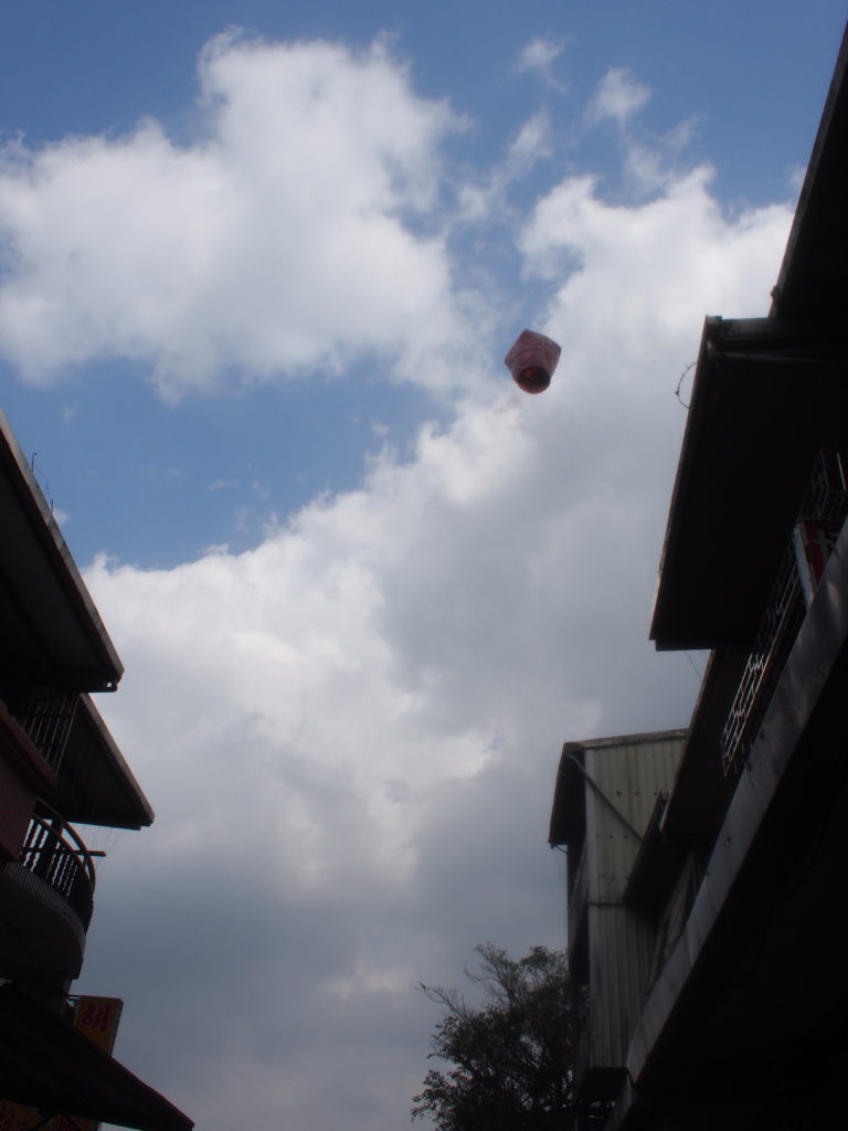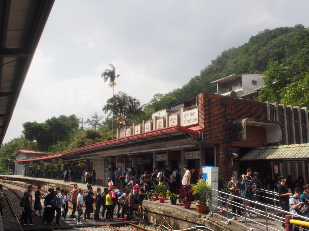 台北から電車に乗って十分に向かいます。ローカル電車で行ったもので、乗り間違えとか、色々あったけど無事に到着。