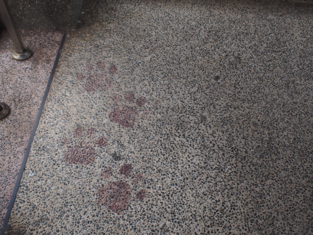 猴硐は別名猫村と呼ばれている。駅から出たら足跡が。