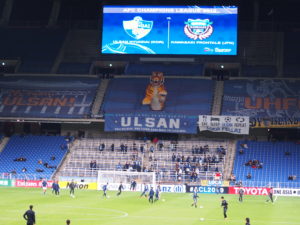 さて今年もやってまいりました。1年ぶりの蔚山文殊スタジアム。例によって、ゴール裏のトラさんこんにちは。 ちなみにチケット代は相変わらずの40000W。こんなに高いのは蔚山だけです。 この日は20時KOでした。着いてすぐ、 … 続きを読む 2019.4 Korea2 蔚山現代vs川崎フロンターレ