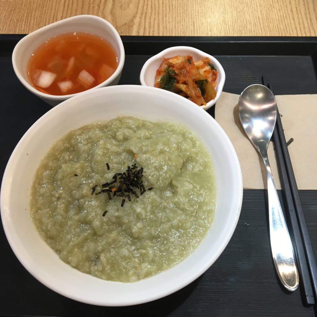 翌朝はエクストリーム出社だったので、釜山空港で朝食を食べて成田経由会社。このお粥、隣のレジで東京五輪組の若者たちがお会計していた。笑