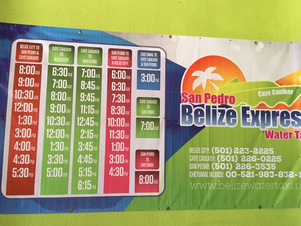 今回はベリーズの首都ベリーズシティではなく、キーカーカーという離島に滞在する。キーカーカー(cayecaulker)経由サンペドロ行きのフェリー時刻表。サンペドロというのは大きめの島で、こちらに滞在する人の方が多いのかも。
