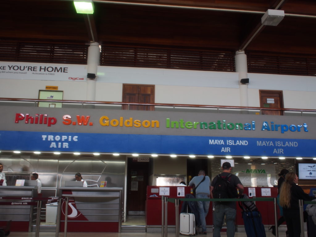 ベリーズの空港、文字の色からいきなりトロピカル感があって笑ってしまった。LAも暖かったけどこちらは常夏。気温は30度近い。