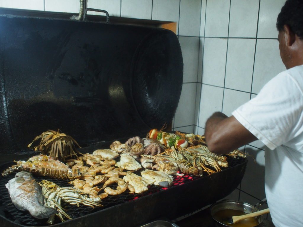 宿の近くのレストランへ。もちろんシーフードのお店!色々な海鮮物の中からどれが良いか選ばせてくれて、その場で焼いてもらうのだ。