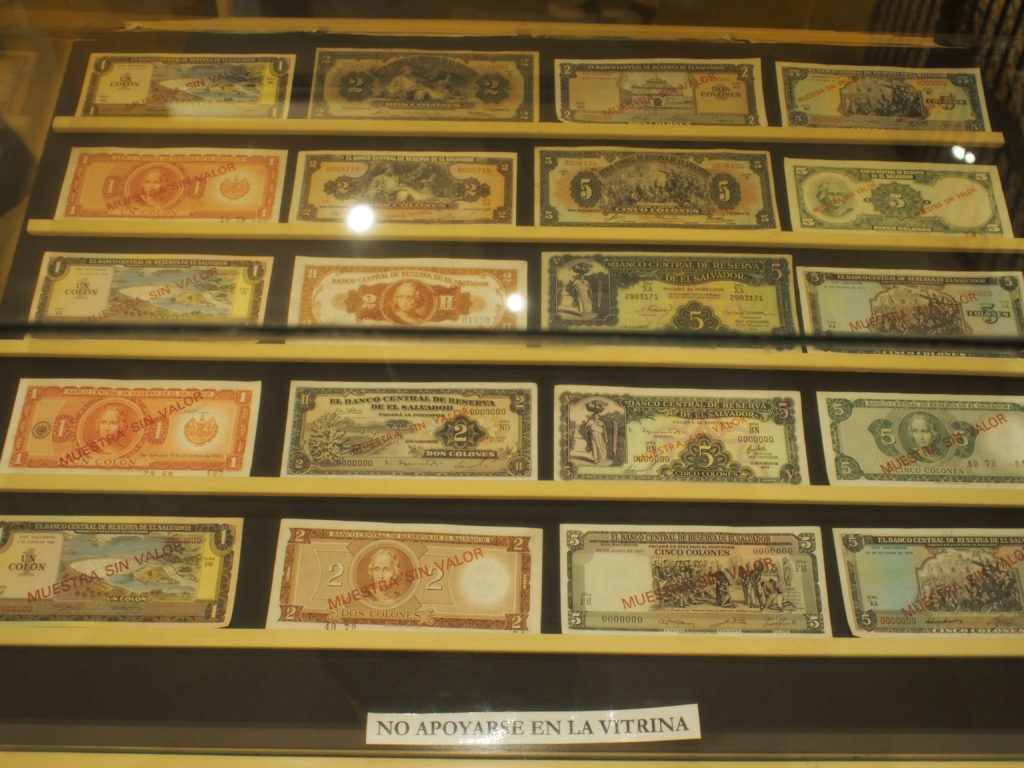 この写真はエルサルバドルのコロンという通貨。2001年からは米ドルが流通しているので使わておらず、ここでしか見る機会は無いかな。