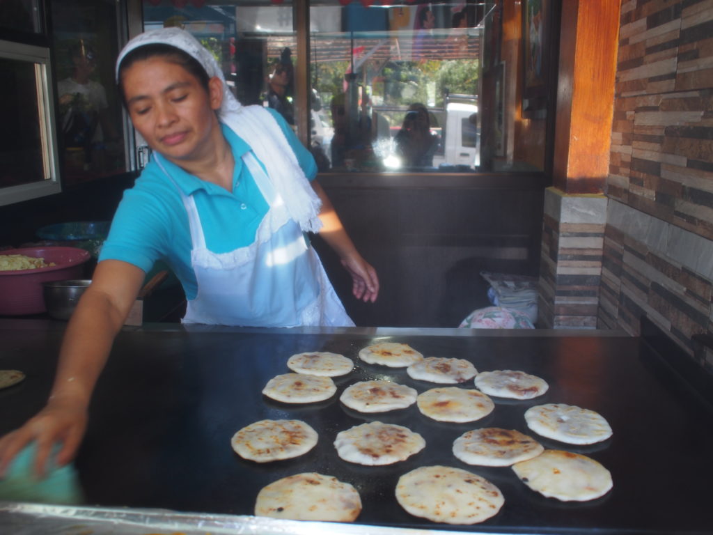 空港へ帰る途中ツアーのアメリカ人がエルサルバドル名物のププサが食べたい!とガイドさんに交渉し、空港近くにあるププサ屋が立ち並ぶエリアに寄ることに。