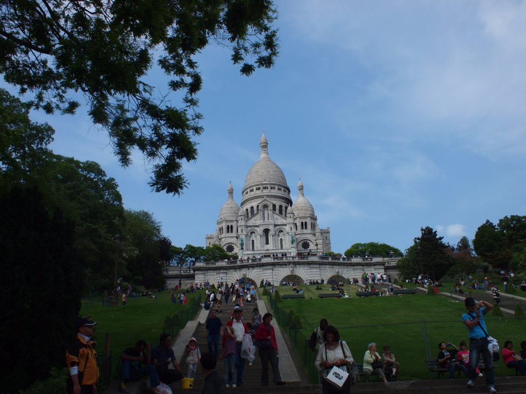 ここから近い観光地は?と尋ねたところ、モンマルトルをオススメされたので地下鉄の最寄駅からモンマルトルの丘を登る。サクレ・クール寺院へ。人がたくさん。そして坂道辛い。