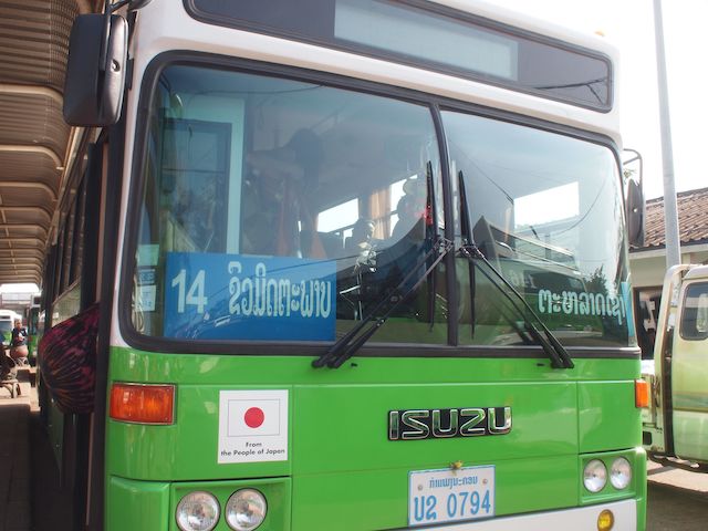 ヴィエンチャンからノンカイバスターミナルまでの直通バスは、日本製なので乗り心地も良い。快適快適。
