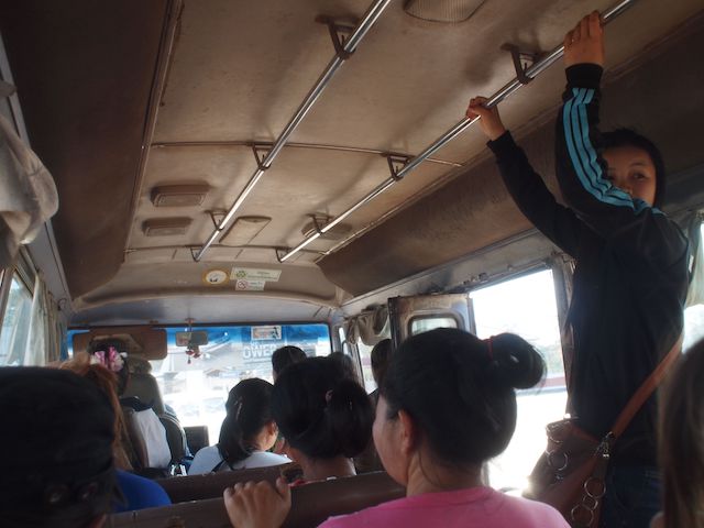 徒歩では渡れないので、友好橋を渡るバスに乗ります。今度はヴィエンチャン直通ではなく、橋を渡るためのバス。