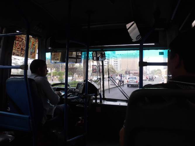 目の前に止まったバス、終点がシェラトンホテルのようなので、とりあえず乗ってみる。目立つから大丈夫でしょ。
