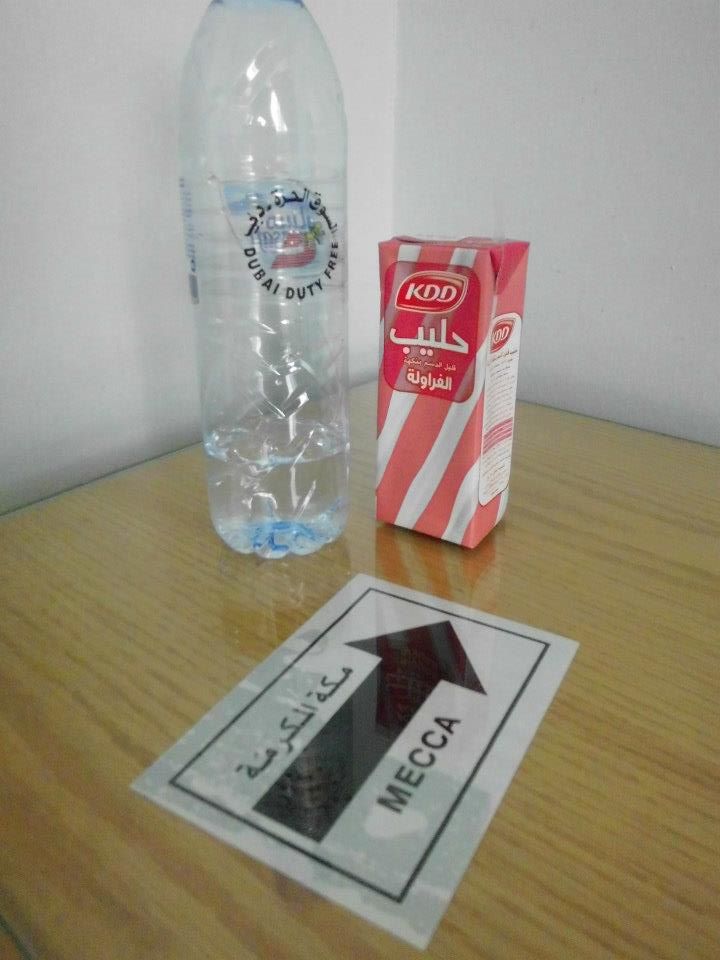 おはようございます。メッカはあちら。ちゃんとホテルの各部屋にも書いてあるのはさすが。