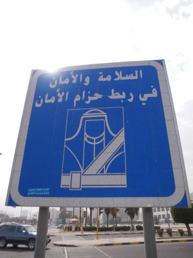 クウェートの交通標識。タクシーを捕まえたたものの、全然英語も通じないので、とりあえず一番わかりやすいクウェートタワーに行ってもらうことに。