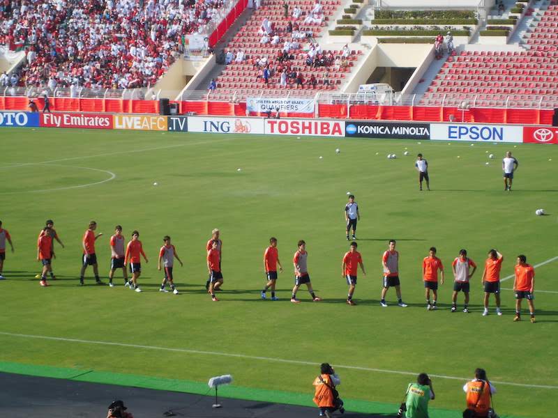 視界いっぱいに広がる中東の男性の白装束や、オマーンが追いついた時の大歓声からの、日本に勝ち越されてからの静寂。なかなか異様な光景。