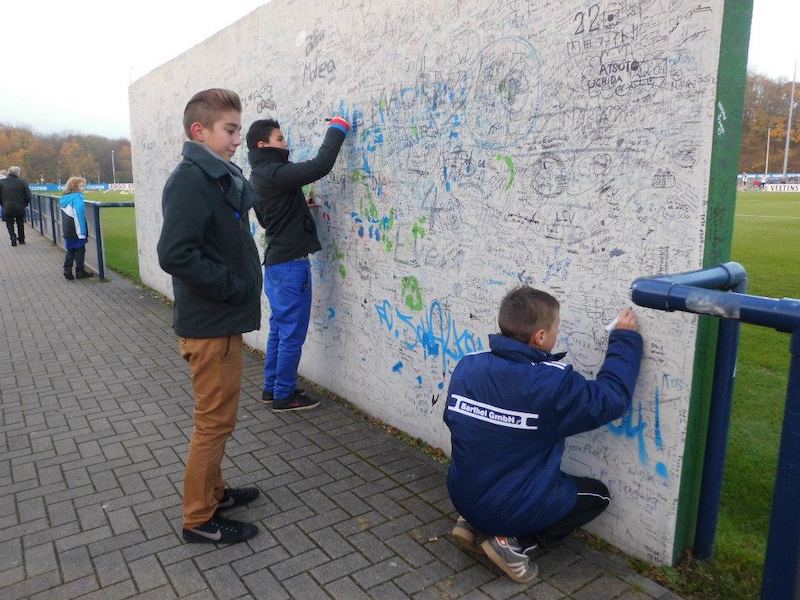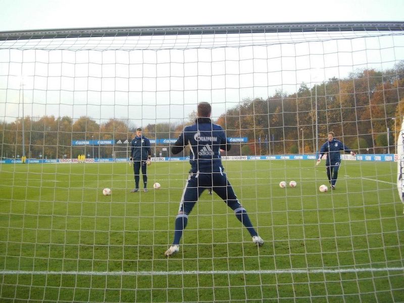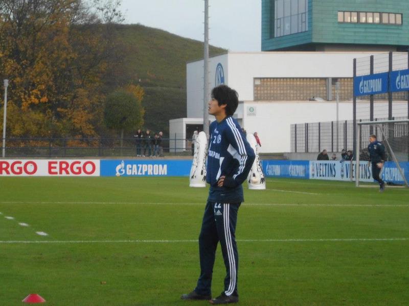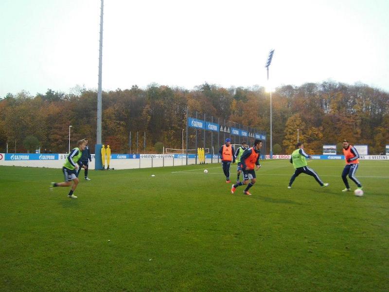 シャルケ04の練習場。オマーン戦の時、後ろに座っていた人にこの後デュッセルドルフに行くと言ったら、練習場の行き方を教えて貰ったのだった。練習してるー!