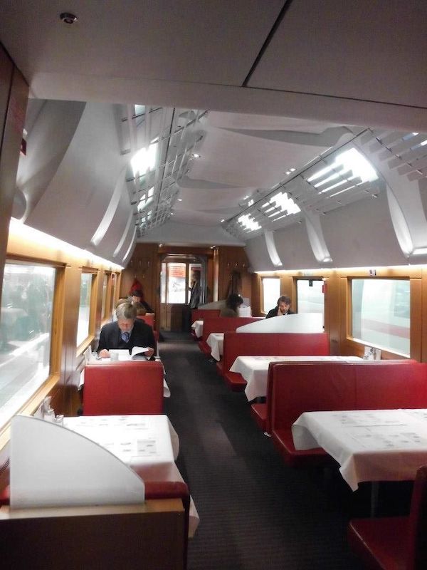荷物を置いたら、また電車に乗って移動。食堂車ってテンション上がるよね。