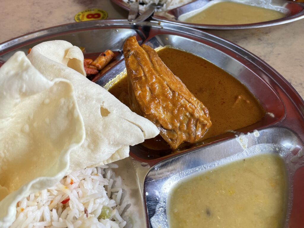 魚が入っているカレー。美味しい!!ただ複数人で来てシェアするのが良さそう。