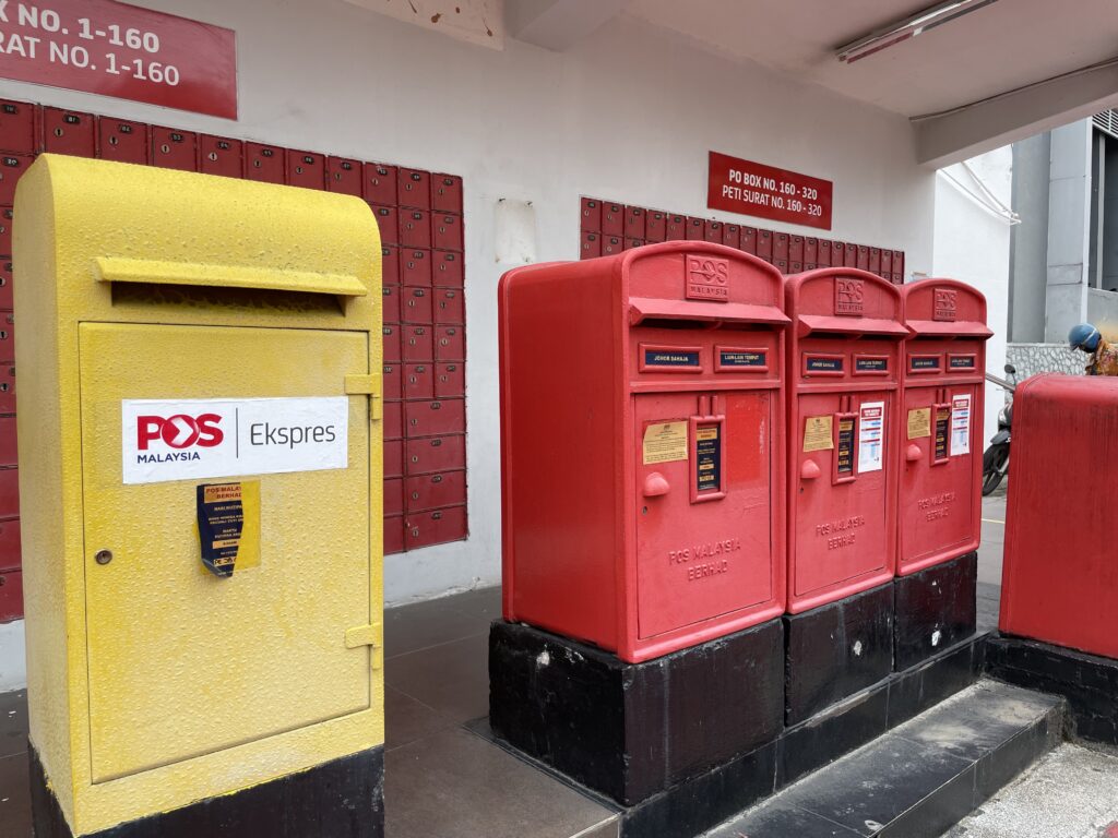 途中郵便局があった。マレーシアのポストも赤。