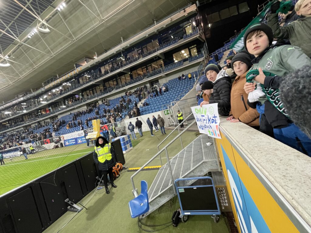 この席はビジターシートではないんだけど、ボルシアユニを着ている人ばかりで、ここは寛容な運用らしい。ボルシアサポがヤンチャなだけなのかな。怖いので私はユニを隠しておいたけども。