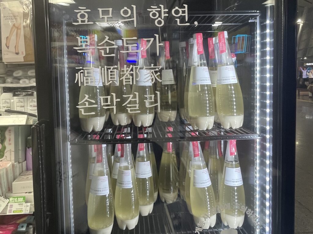 蔚山名物ソンマッコリも一本購入。シュワシュワで美味しい。