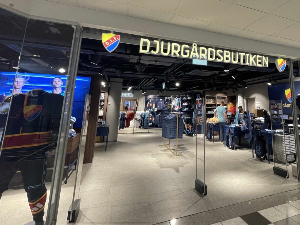 サッカーチーム、ユールゴーデンIFのグッズショップへ。