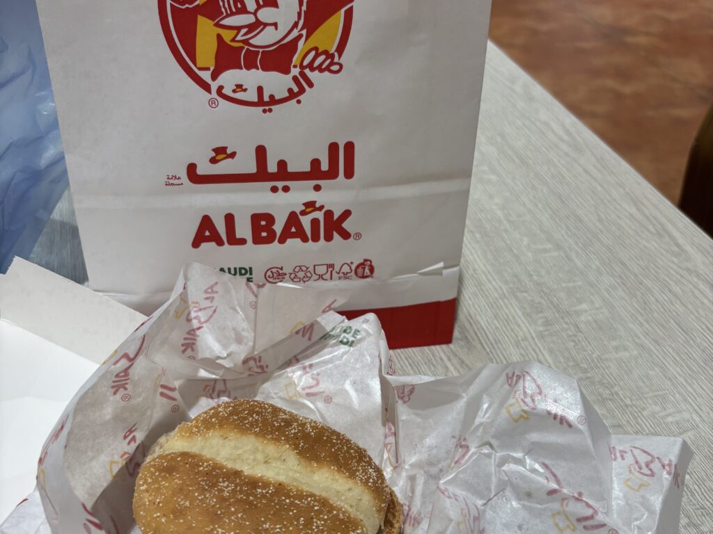 フードコートのアルバイクへ。チキンフィレバーガーを頼む。5リヤルぐらい。バンズの間に揚げ物一つしか入っていないバーガーだけど、何故か美味しいクセになる。