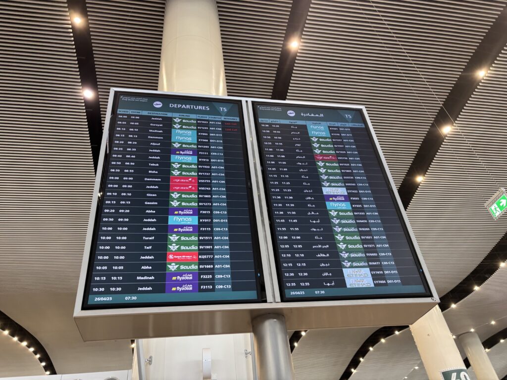 サウディアの国内線は受託手荷物有料。あって良かったスカイチームのステータス。受託荷物一つ無料、保安検査場も優先レーンがあるし、座席も隣席ブロックされていた。
