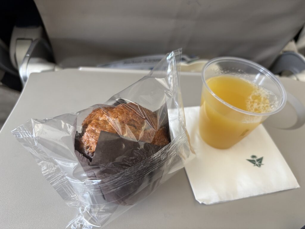 その割に国内線でもマフィンと飲み物のサービスがあった。