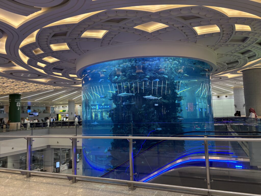 ジェッダの空港に到着。おそらくみんな写真撮影したであろう大きな水槽。