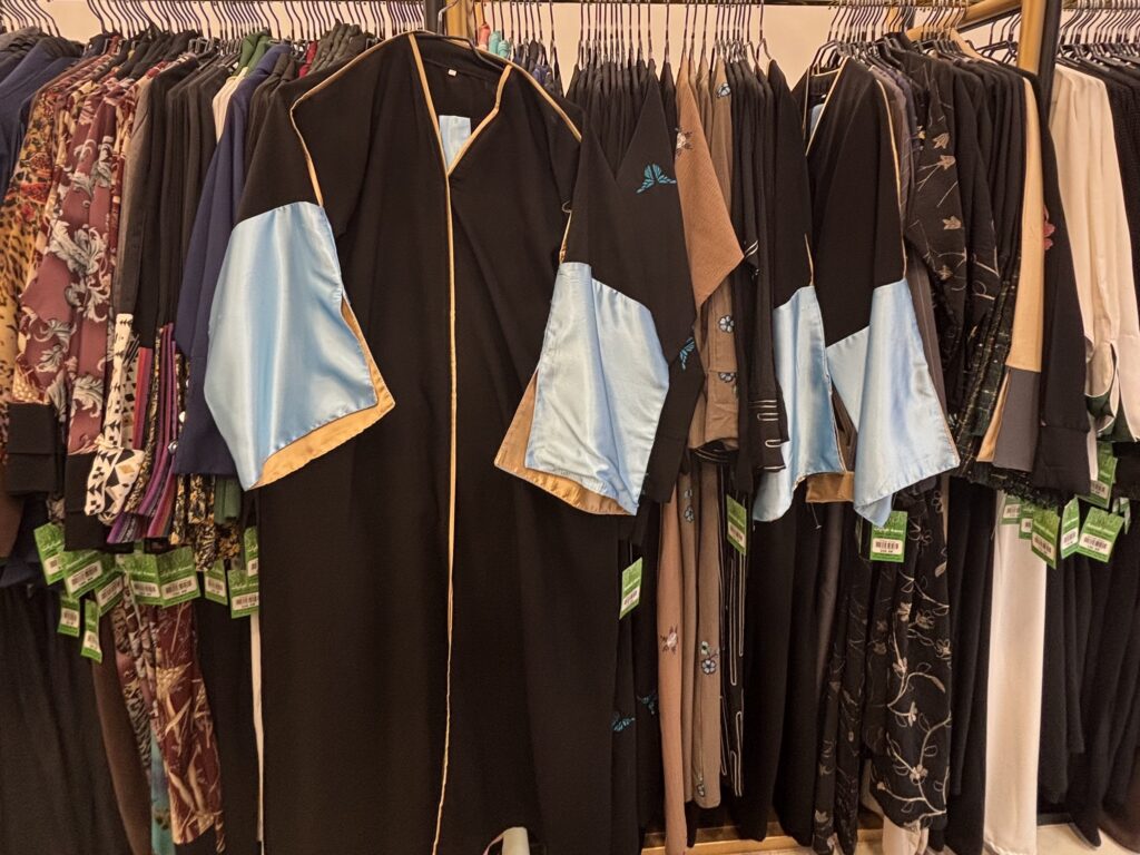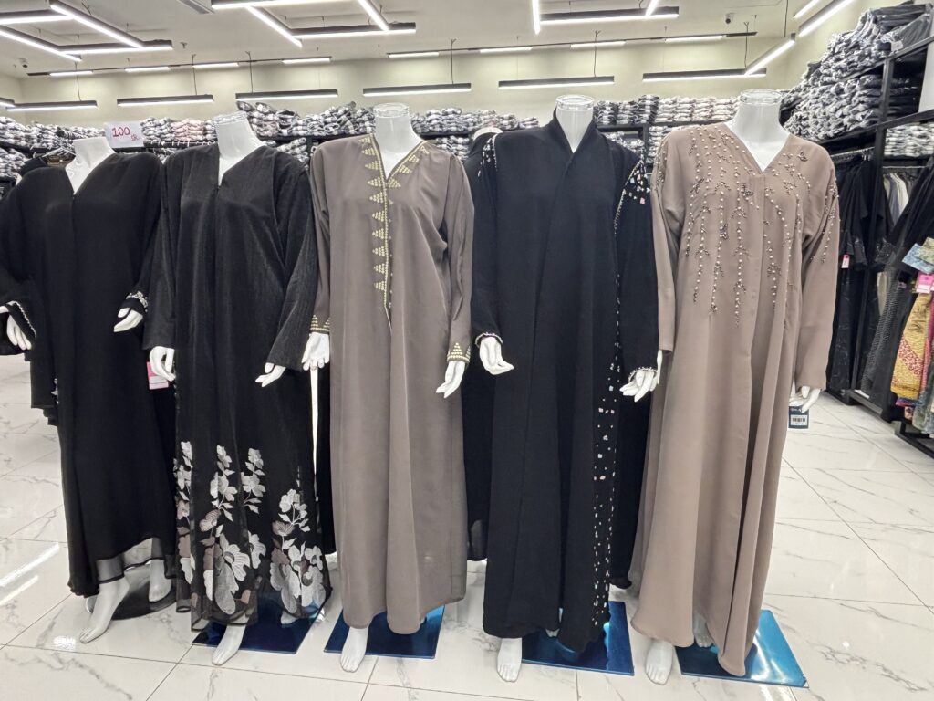 このスーパーが入っているSERAFI megamallはアバヤのお店がたくさん入っている。リヤドで行ったアバヤモールは上質なものばかりだったけど、こちらはペラペラだけど手頃な価格。