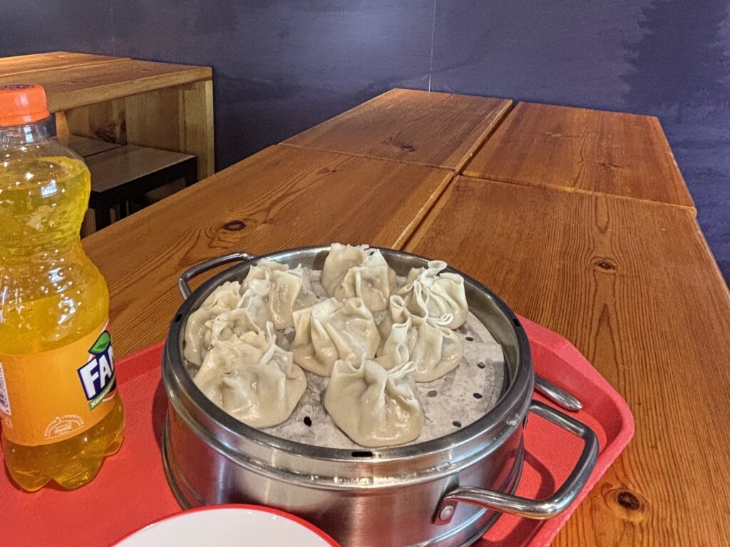 お寺の近くにあったブーズ(餃子みたいなもの)屋さんで朝食兼昼食。ここでももちろん羊肉。