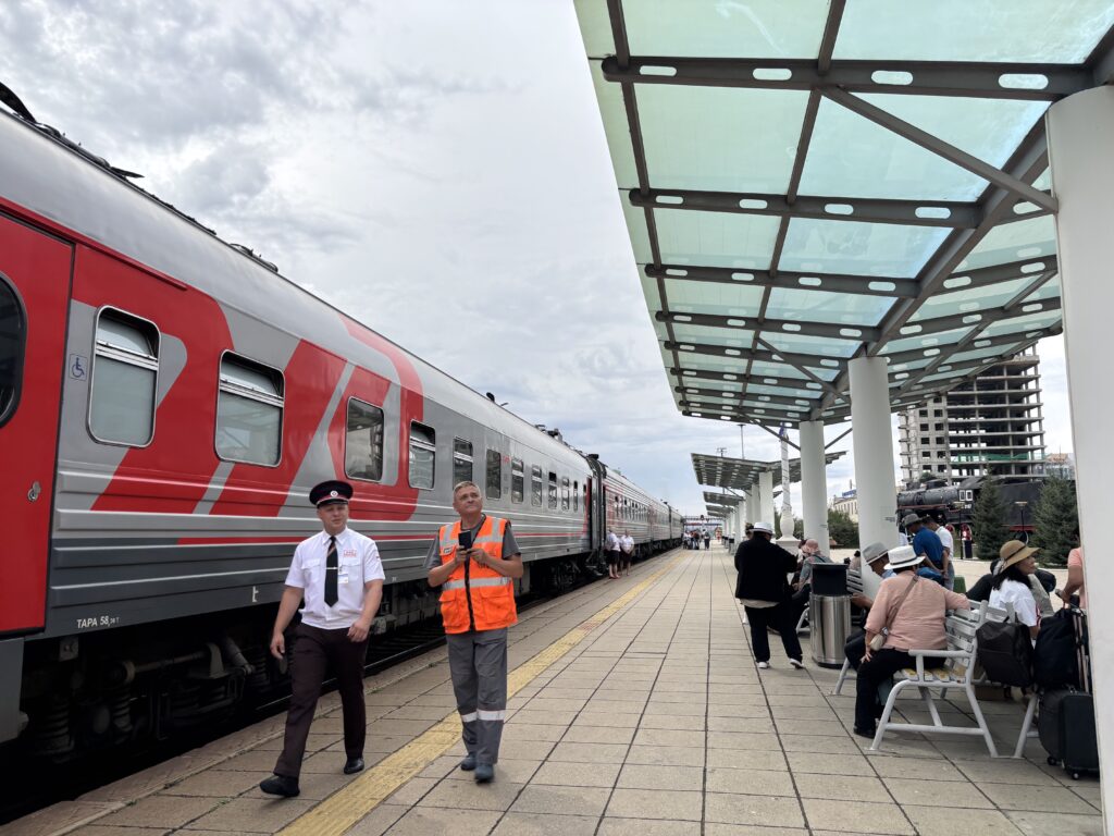 ロシア鉄道の車両で、運転手も車掌さんもロシア人。ロシア語を話している。