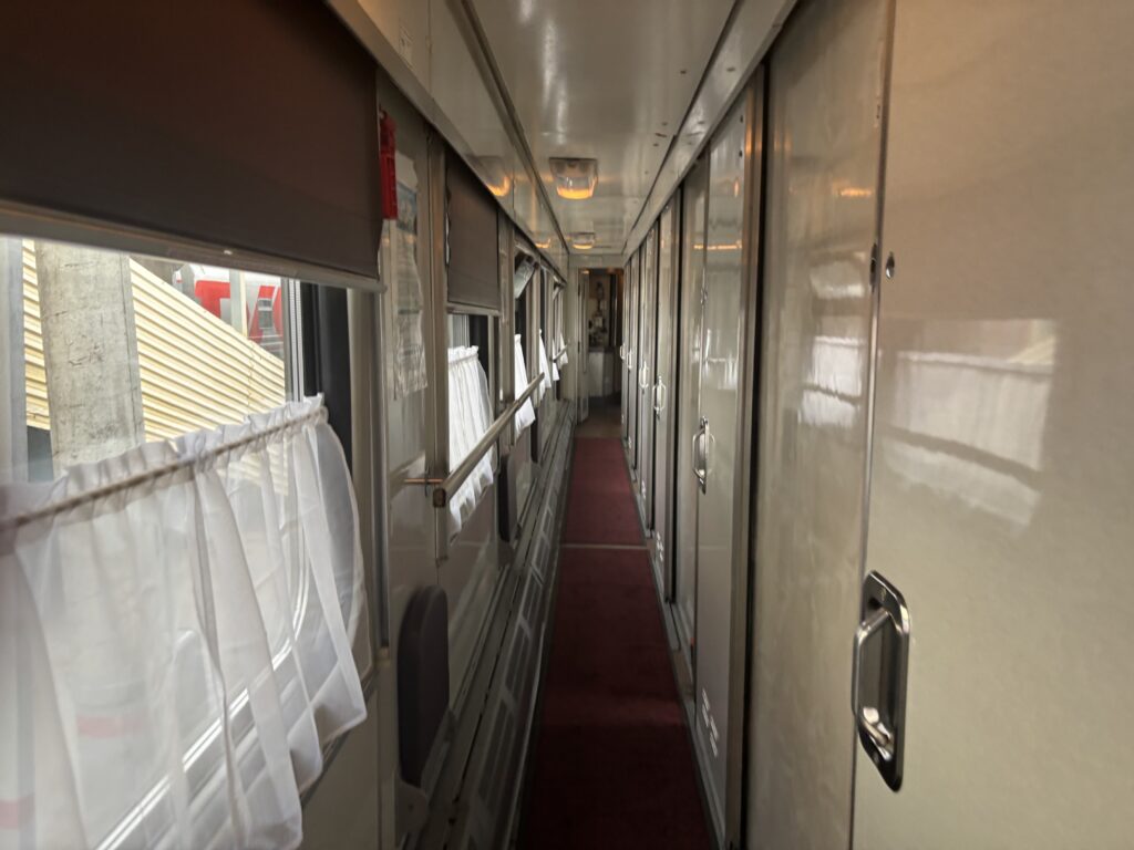 この後電車は国境を越えて、日付が変わった頃にロシア側最初の駅ナウシキで停車する。今度はロシアの係員が乗り込んで来て、荷物やパスポートをチェックして行く。