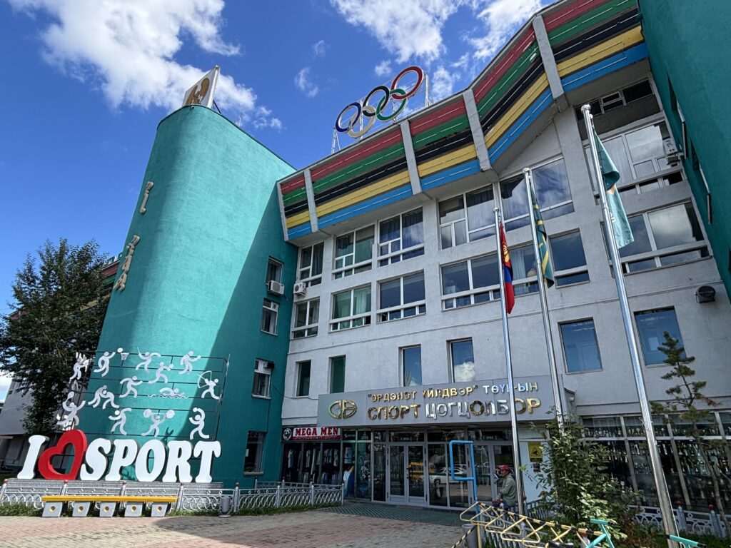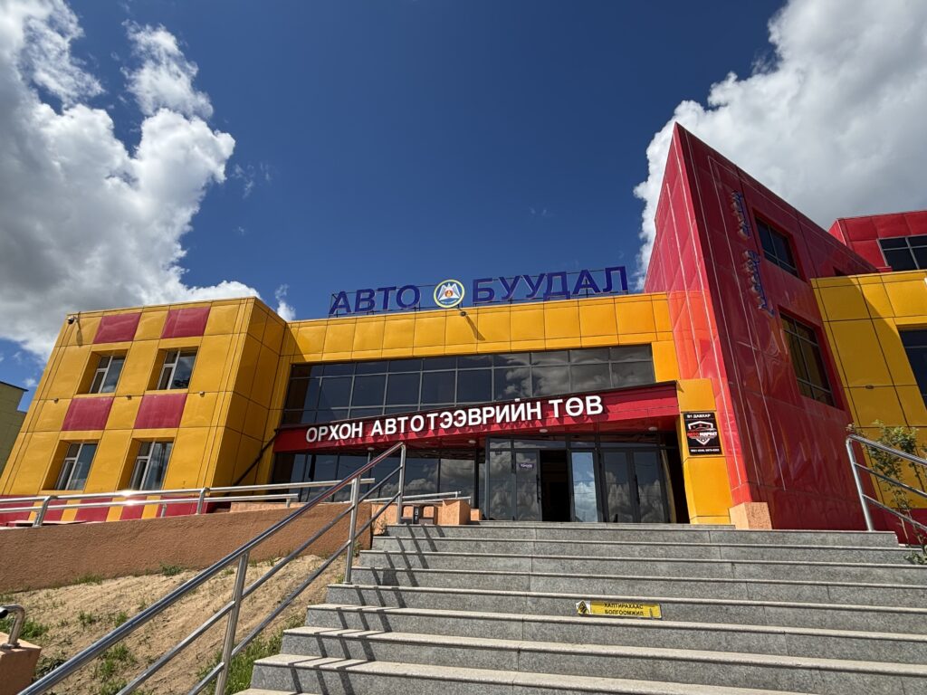 2時間ほどでエルデネトのバスターミナルに到着。カラフルな建物だ!