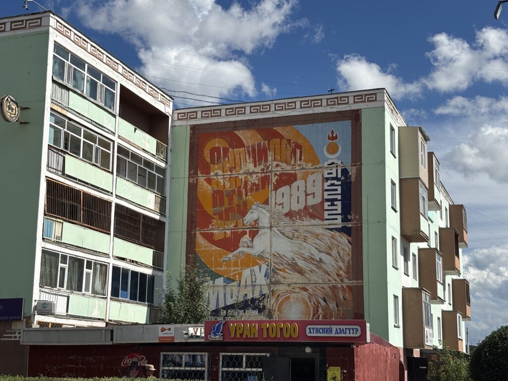 エルデネトは旧ソ連の影響を受けているので、壁画とかもそれっぽい。