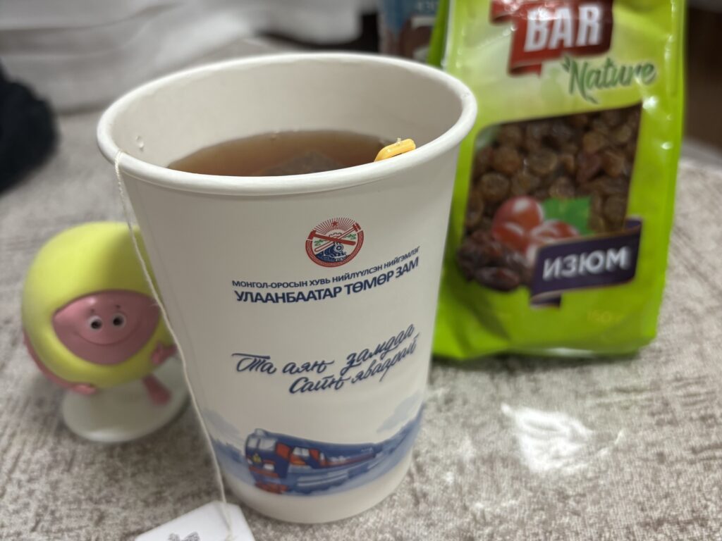 昨日乗った電車ではカップラーメン等の車内販売があったけど、この便は飲み物だけらしい。私はお茶を持っていたので、カップだけ購入して車内で飲んでいた。