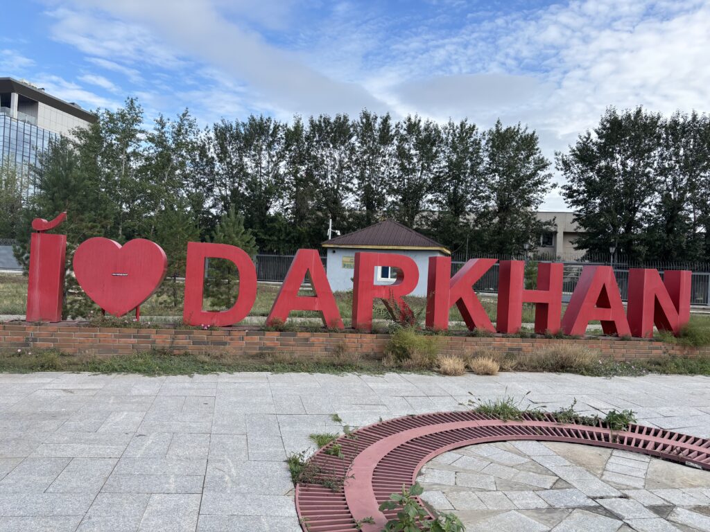タクシーを降車したところに「アイラブダルハン」のモニュメントがあった。