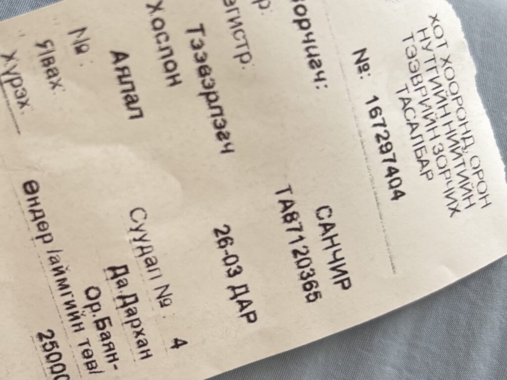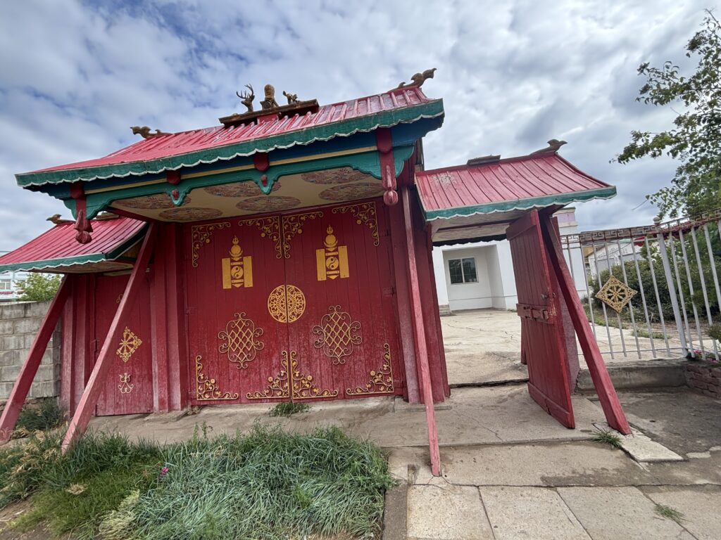少し歩いて歩道橋近くの赤いダツァン。地図によると「Үржин Сан-Аг Чойлин Хийд」こちらは中には入れなかった。