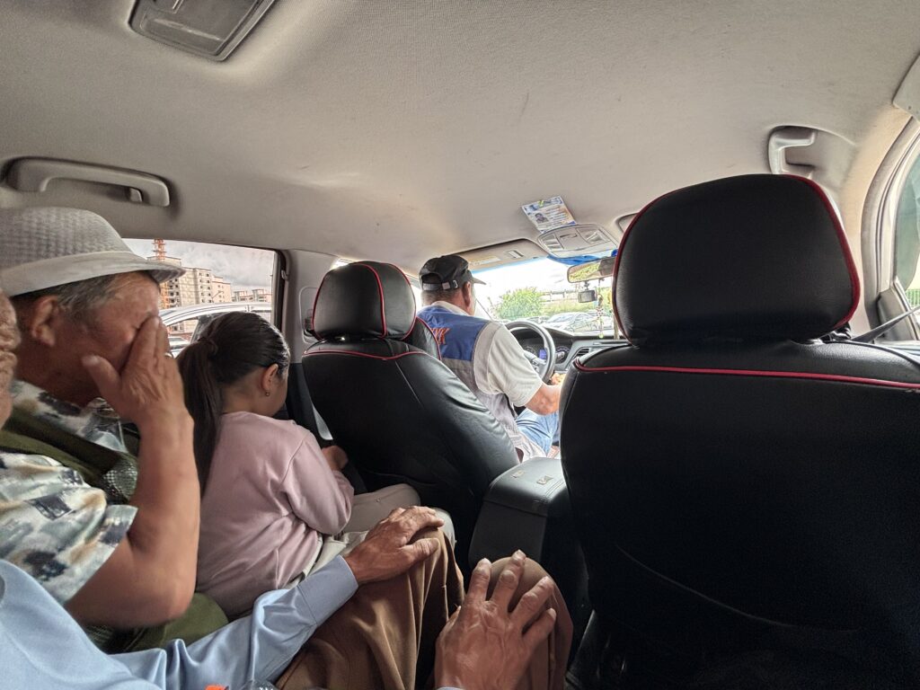 6人乗っててかなり狭いし、綺麗な道ばかりではないので揺れる。牛が歩いていて進みが遅くなったりするしで予定より時間がかかる。