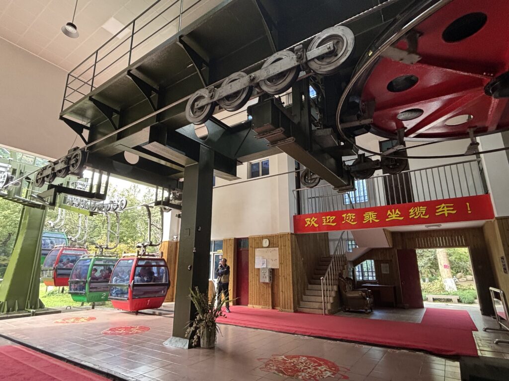 狼山という名前の通り山の上にお寺がある。面倒なのでゴンドラに乗ってみた。片道50元往復60元だったので往復券を購入。ガタガタで少々怪しいゴンドラ。