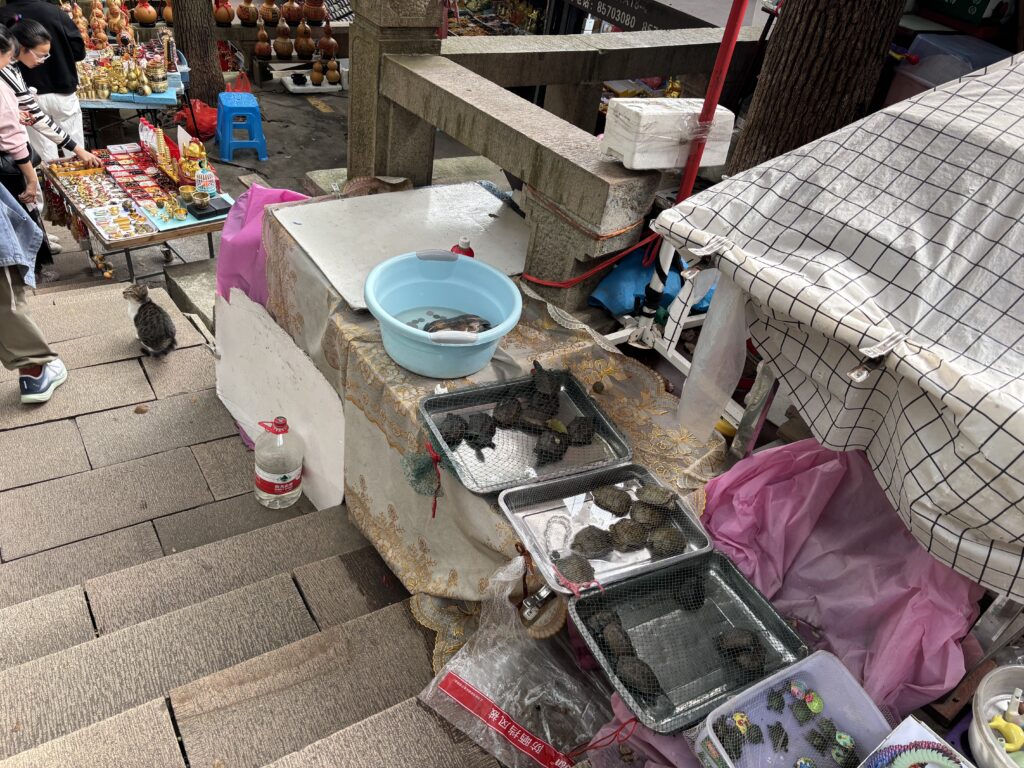 山道にはネコがたくさんいたし、何故か亀も売られていた。