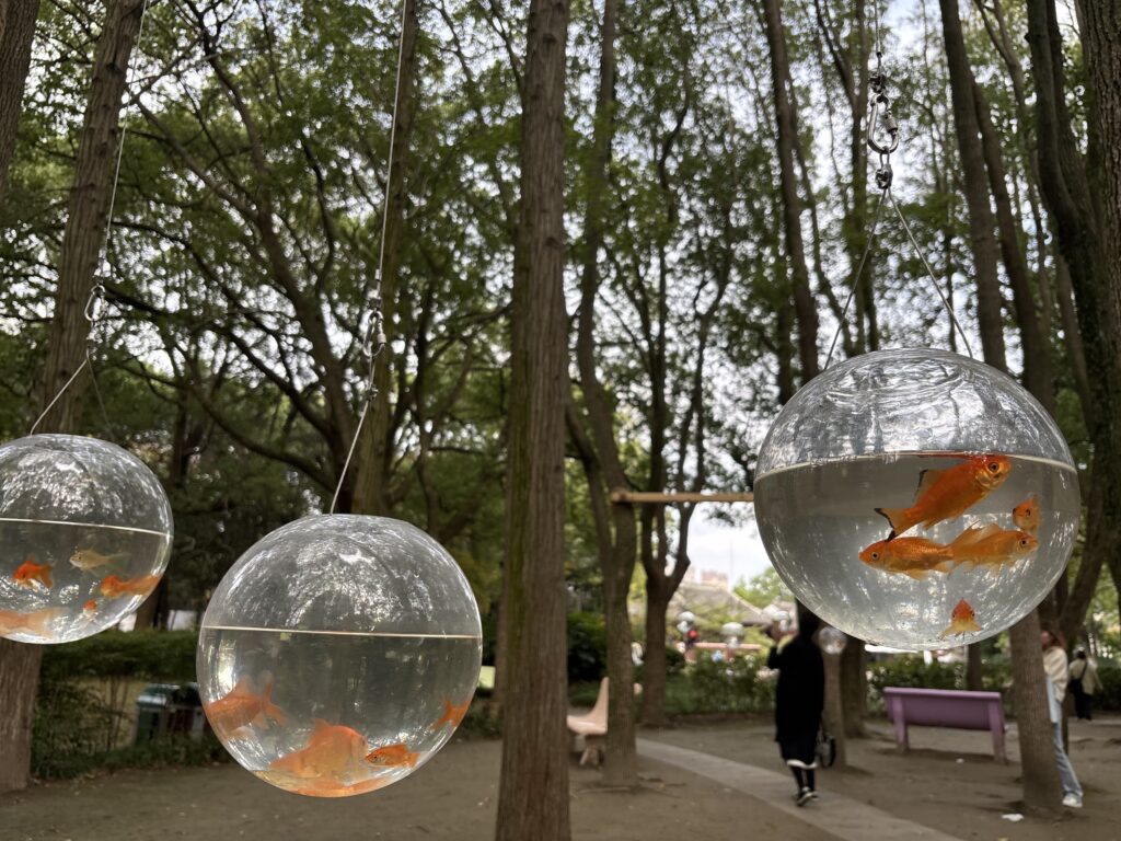 金魚を使った展示があり、映えスポットとして地元の女の子達がたくさん集まっていた。