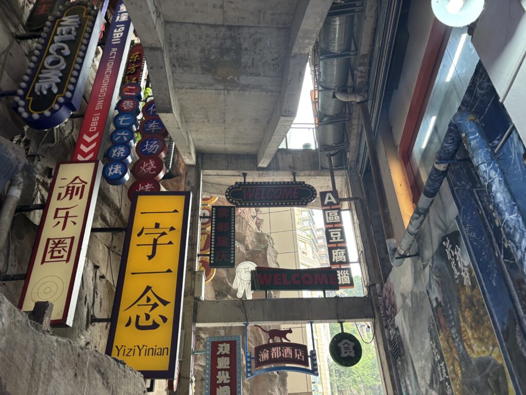 宿の近くにある洪崖洞(ホンヤードン)へ。重慶の象徴のような場所。坂道を下っていった感覚があったけど、着いたところは建物の9階。最早意味が分からない。。
