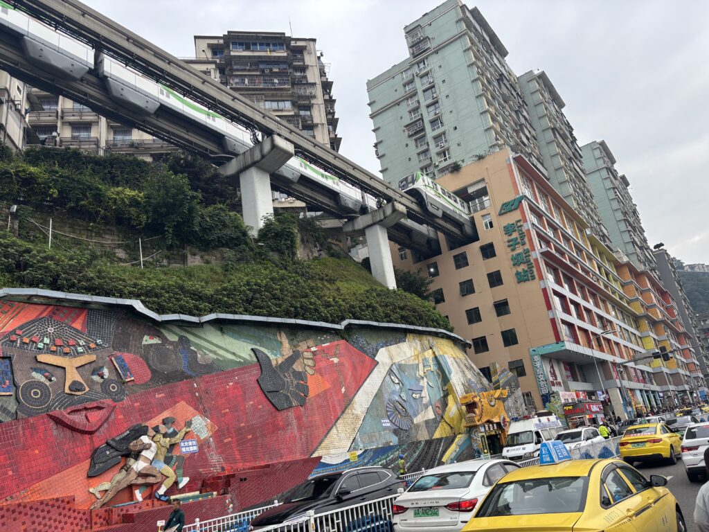 建物の中をモノレールが抜ける様子が珍しい重慶の観光スポット。